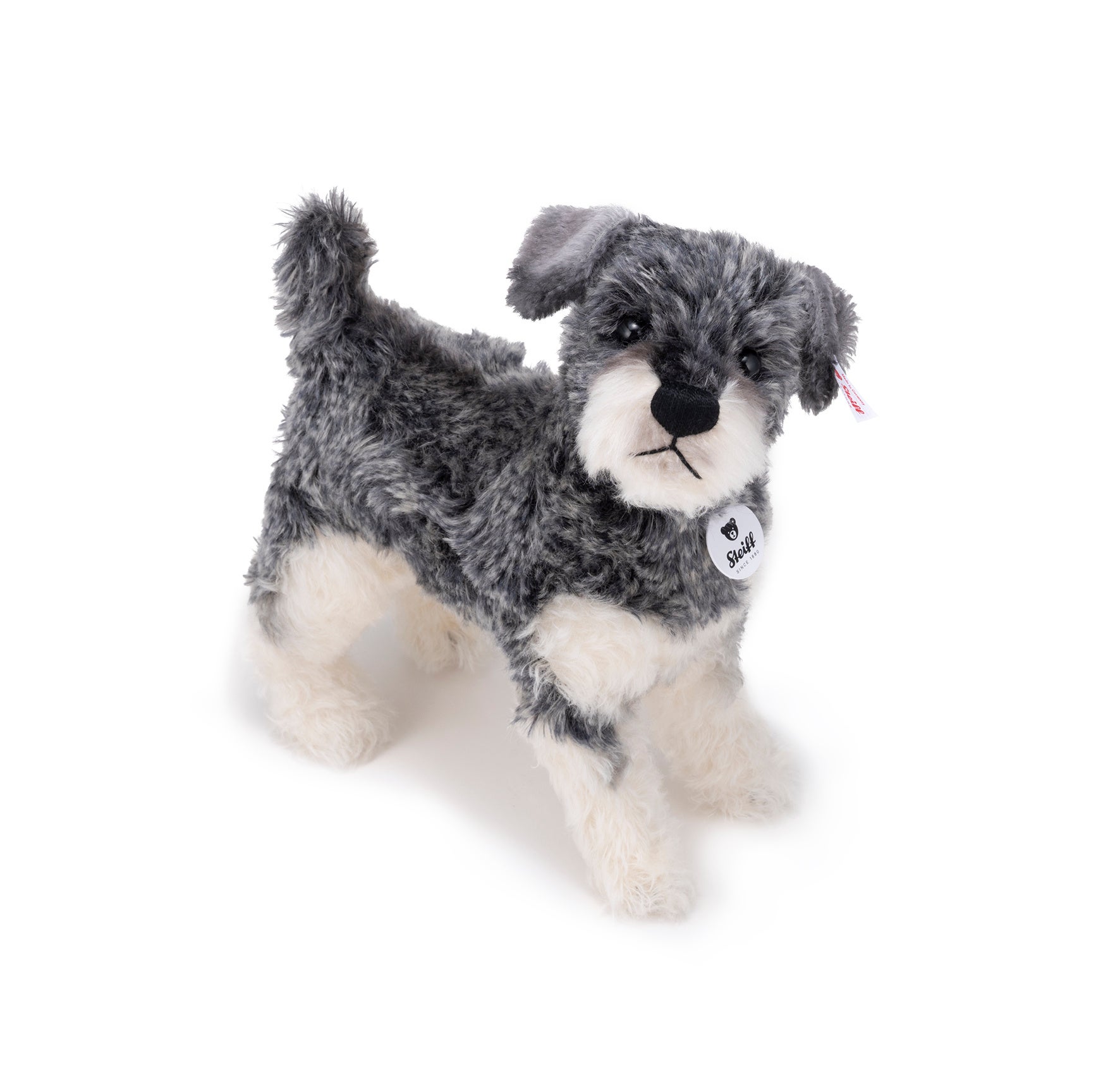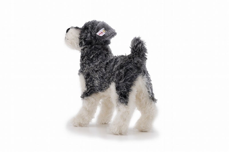 シュナウザーは、ドイツ原産の犬種で、知的な顔立ちと陽気な性格から、日本でも人気を博しています。日本ではシュタイフはテディベアで有名ですが、他にも様々な動物を作っており、中でも犬は創業から現在に至るまでに数多くの種類を作ってきました。この度発売するシュタイフのシュナウザーは、全長28センチのぬいぐるみで、首のジョイントで動かすことができます。アンゴラヤギの最高級モヘアが使われ、複雑な色合いでシュナウザーらしさが見事に表現されています。