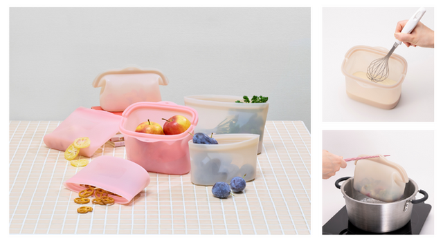 耐熱・耐冷・耐久性に優れた100%プラチナシリコーン製で、調理から保存まで幅広く使えます。くり返し使えるので環境にやさしいだけでなく、経済的な商品となっています。シリコーンバッグの中で調理から保存までこれ一つでできます。洗い物を減らしタイパも良い商品です。既存品よりもさらに底・口が広く、安定感のある使い心地です。