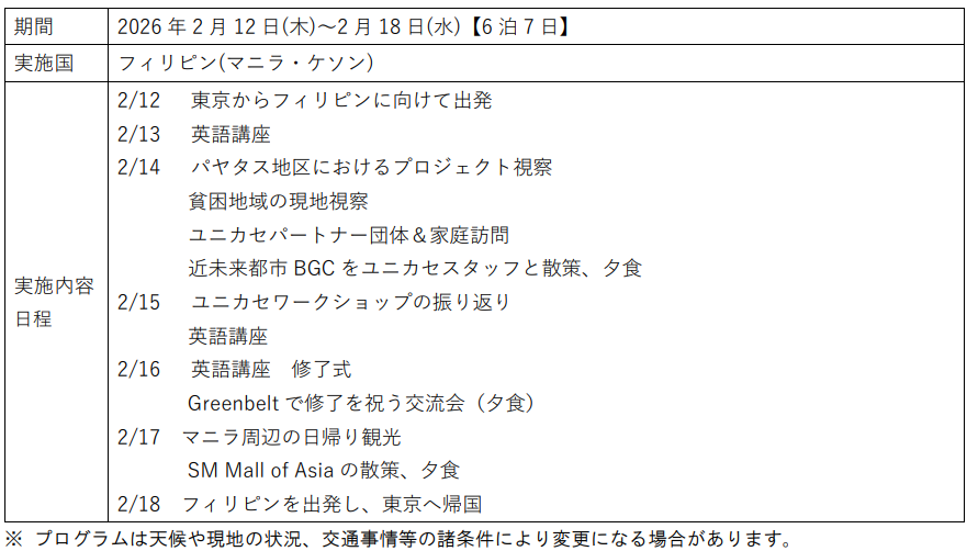 株式会社ウィザス(大阪府大阪市、代表:生駒 富男)が運営する、通信制高校「第一学院高等学校」(本校:茨城県高萩市・兵庫県養父市、全国67キャンパス:2025年12月時点)において、2026年2月12日(木)~18日(水)に「フィリピン短期留学」を開催いたします。