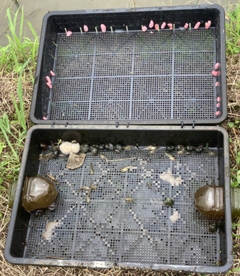 タニシに関しては大型の捕獲器、卵については小型の捕獲器が多く捕獲しました。