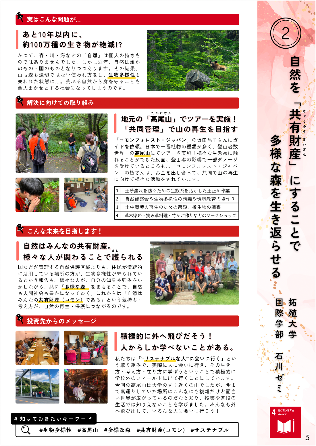 中高生が大学生の活動を知る「事前学習BOOK」の1ページ
