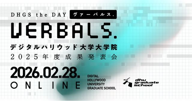 日本初の株式会社による専門職大学院で、SEAD(Science/Engineering/Art/Design)4要素の融合をコンセプトとして、デジタルコミュニケーションを駆使し、社会に新しい産業や文化を生み出すリーダーを輩出するデジタルハリウッド大学大学院(所在地:東京・御茶ノ水、学長:杉山知之、以下本大学院)では、大学院生の研究成果を発表する『デジタルハリウッド大学大学院2025年度成果発表会VERBALS. DHGS the DAY』を、2026年2月28日(土)にオンライン開催いたします。