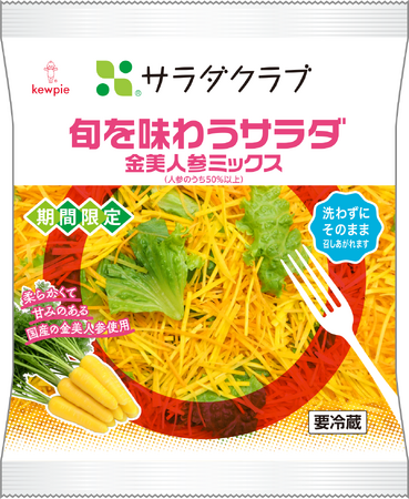 「旬を味わうサラダ ミックス」は、季節を感じられる野菜を使用した「旬を味わうサラダ」シリーズの期間限定商品です。本商品は、配合野菜の約8割が人参で構成されており、そのうちの半分以上に、冬から春に旬を迎える国産の“金美人参”を使用しています。金美人参は、通常の人参よりも甘みが強く、肉質もやわらかいので生食にぴったりな食材です。通常の人参と比べ匂いのクセも少なく、野菜が苦手なお子さまにもおすすめです。鮮やかな黄色が特長で、食卓を華やかに彩ります。