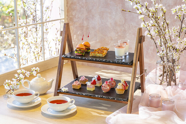 日本の春を象徴する桜といちごをテーマに、淡いピンクや白を基調とした華やかで繊細なスイーツと、桜の香りや塩味をアクセントにしたセイボリーをご用意。やわらかな自然光が差し込む開放的な店内では、桜が舞う情景を思わせるティースタンドとともに、視覚と味覚の両方で春の訪れを感じていただけます。