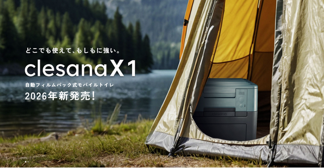 この度、水を使わないトイレ「Clesana(クレサナ)」より自動フィルムパック式モバイルトイレ「X1(エックスワン)」を2026年1月30日(金)より予約販売開始いたします。