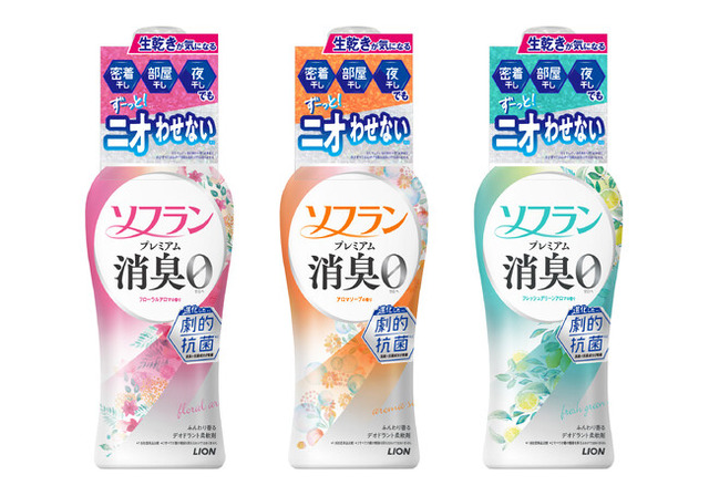 こうした「生乾きのニオイ」悩みを解決するため、抗菌力を高め、進化した(※1)劇的抗菌(※2)で、「部屋干し・密着干し・夜干し」で洗濯した衣類でもずーっと(※3)ニオわせない(※4)柔軟剤『ソフラン プレミアム消臭』を改良新発売いたします。