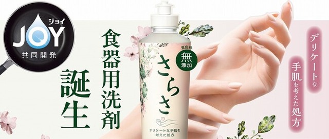 近年、手は年齢が表れやすい部位として、日常的にハンドケアやネイルを楽しむなど、手元の美しさを意識する生活者が増えています。一方、食器洗いでは「洗い上がりに妥協できない」という意識が根強いので、手肌のことを考えた洗剤は「洗浄力が弱そう」という印象から選ばれにくく、洗浄力の高い洗剤を選ぶ傾向が続いています。また、手袋を使用する方が増えていますが、汚れ落ちや洗剤残りが手の感触から分かりにくく、使いにくいと感じる方も少なくありません。このような「手肌を大切にしたい」と考える方々に応えるため、無添加*¹洗剤ブランド『さらさ』から、ジョイと共同開発した「さらさ 食器用洗剤」を新たに発売します。製品特長:デリケートな手肌を考えた処方+ジョイと共同開発で高い洗浄力