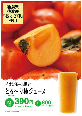 青木フルーツ株式会社(本社:福島県郡山市、代表取締役社長:青木大輔、以下当社)は、「果汁工房果琳」他フルーツジュースバー一部店舗にて、新潟県佐渡市の特産品「おけさ柿」の規格外品を有効活用した『とろ~り柿ジュース』を、2026年2月2日(月)より期間限定で販売いたします。本商品の販売は、当社とJA佐渡、JA全農にいがた、イオンモール株式会社が協働し、規格外となった佐渡産「おけさ柿」を有効活用することで、食品ロス削減と地域農業の持続的発展に貢献する、SDGsの理念に基づいた取り組みによるものです。