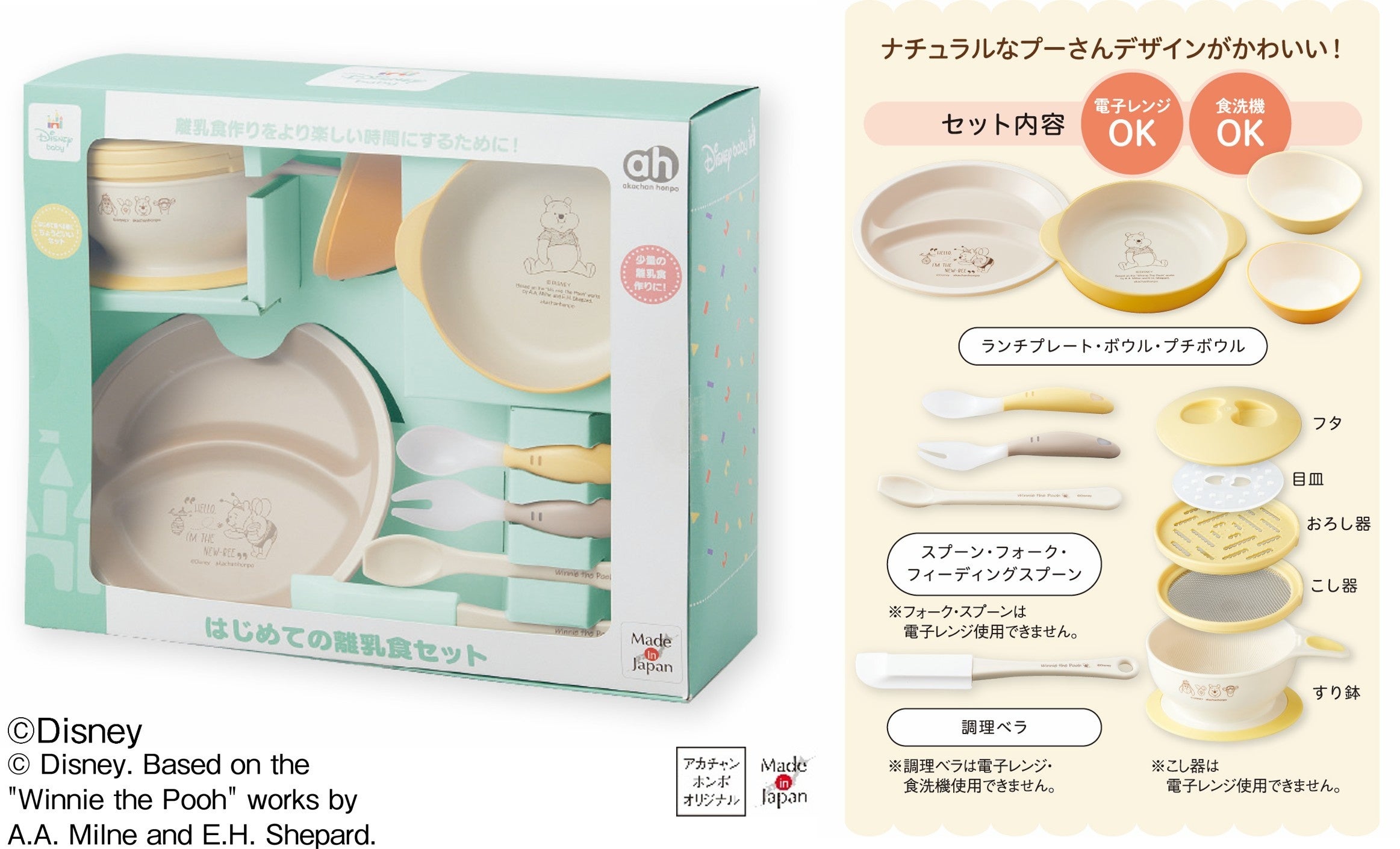 離乳食デビューに必要なものが揃ったセット。ナチュラルなプーさんのデザインがかわいい!