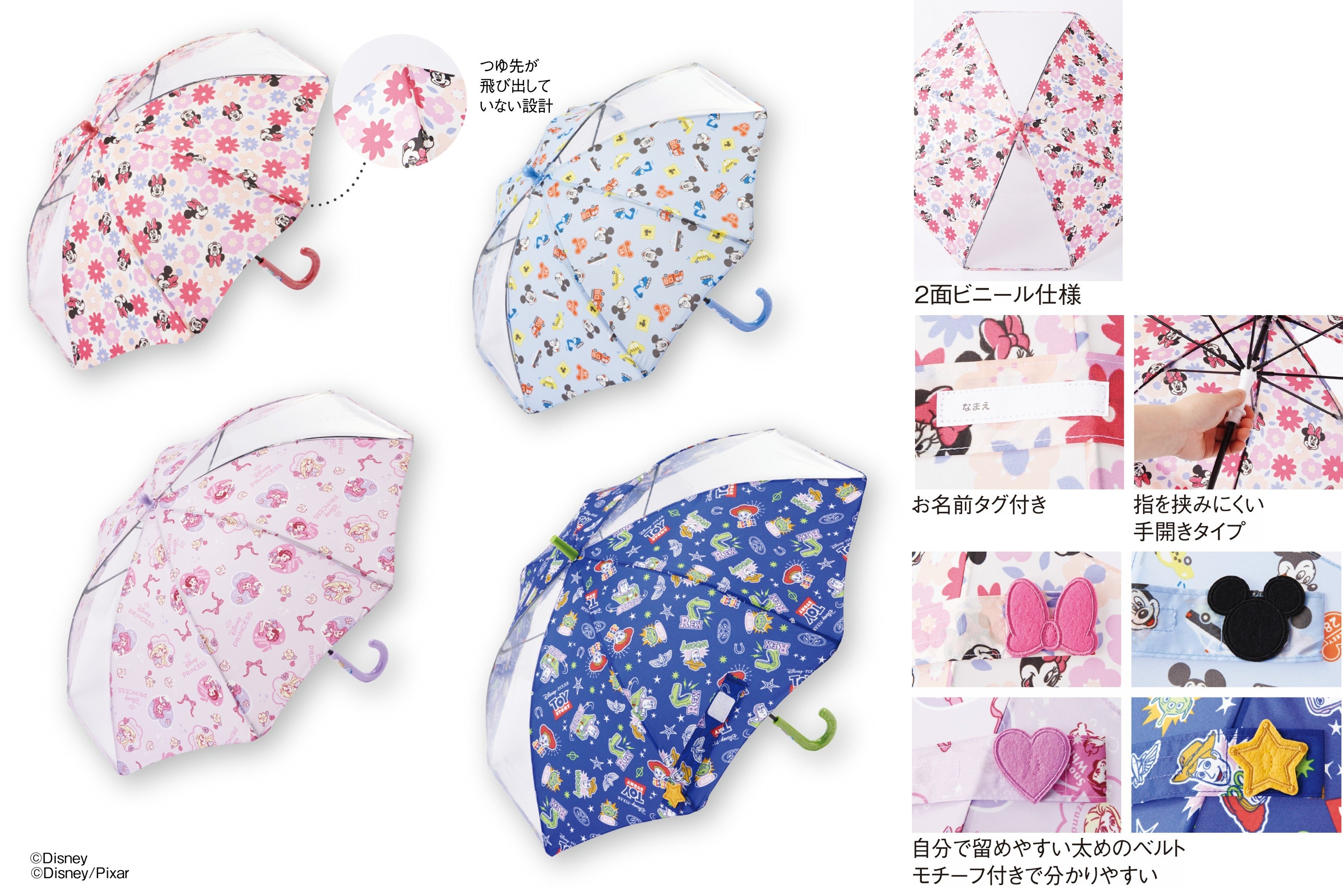 つゆ先がとがってない人気のフチまる傘のディズニーデザイン。傘デビューにぴったりの商品です。