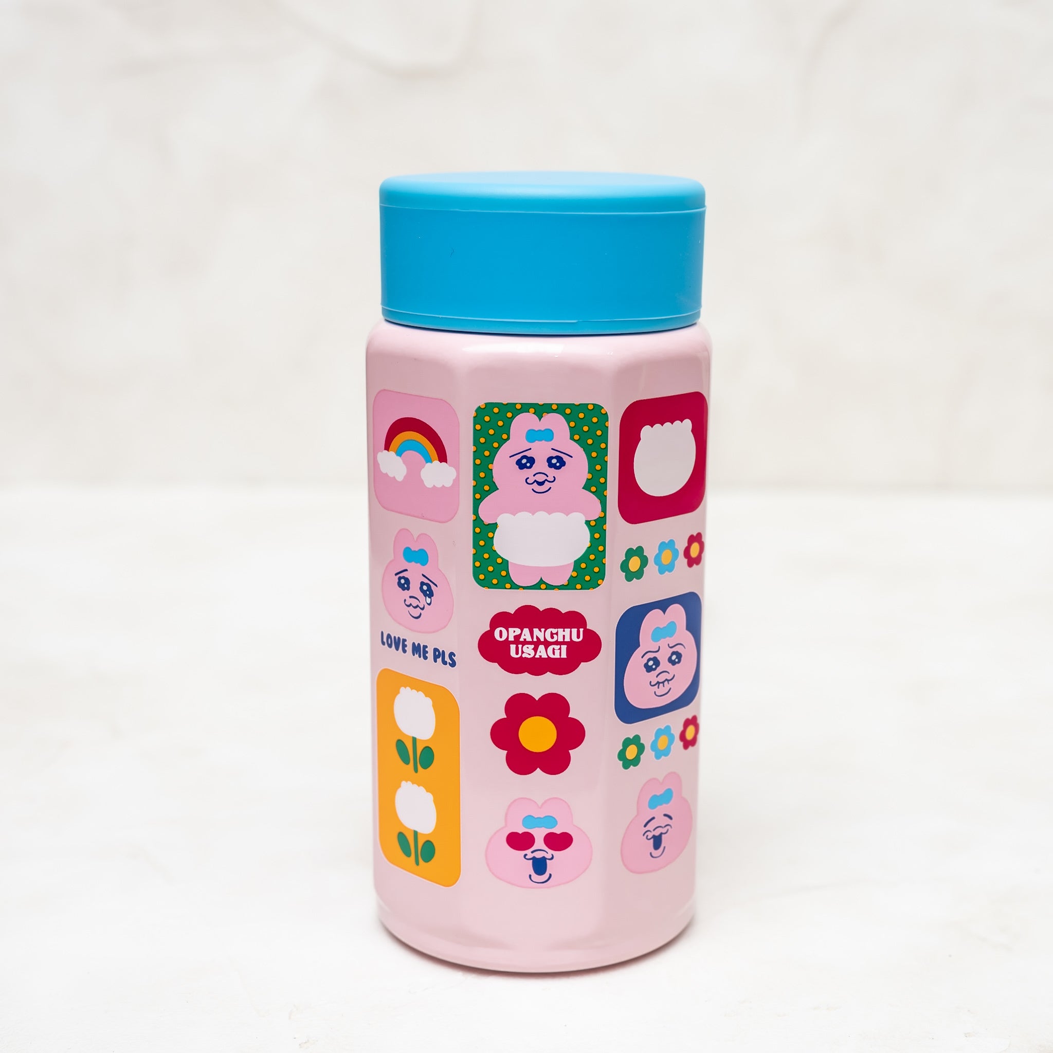 哀愁漂う「おぱんちゅうさぎ」の表情と、明るくポップなグラフィックのギャップが魅力です。