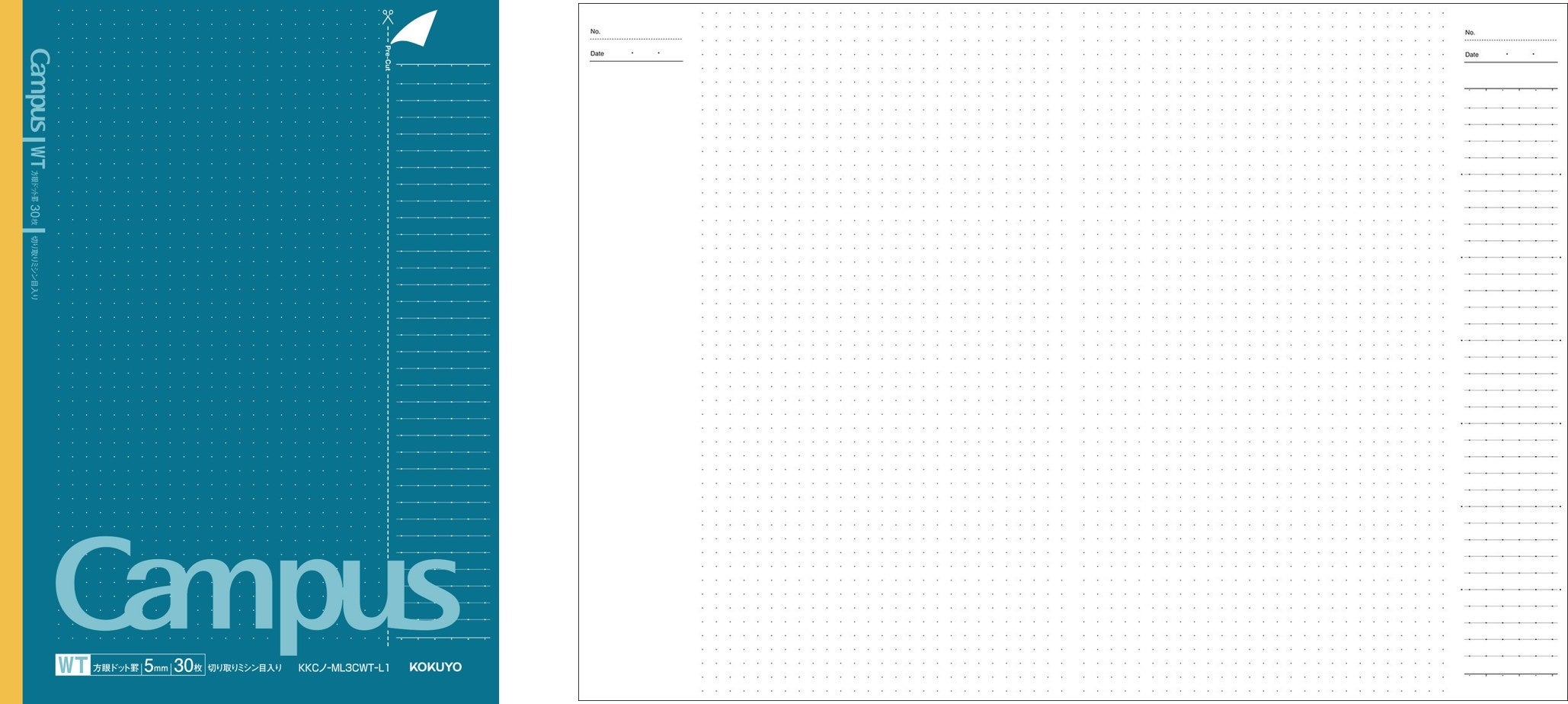 仕様: セミB5サイズ、5mm方眼ドット罫(切り取りミシン目入り)、30枚、無線とじ