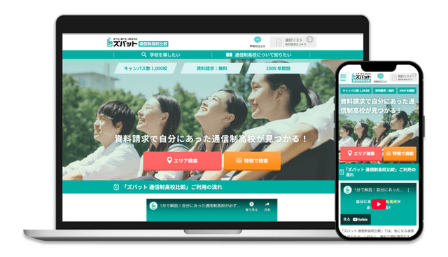2025年10月に累計利用者数が20万人を突破した「ズバット 通信制高校比較」。