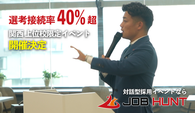 新卒紹介および採用支援事業を展開する株式会社HRteam(本社:東京都渋谷区、代表取締役社長:上原一輝、以下「当社」)は、旧帝大(京大・阪大・神大)および関関同立クラスの学生に限定した、新卒採用イベント「JOBHUNT」を開催します。