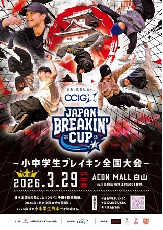 一般社団法人日本ブレイキン協会、特定非営利活動日本ブレイクダンス青少年育成協会(本社:石川県金沢市間明町2丁目126番地2 会長:草野 真澄)は、CCIG JAPAN BREAKIN' CUP2025小中学生ブレイキン全国大会を2026年3月29日に開催します。このイベントは、ブレイキンの普及や選手の育成・交流をテーマに、小中学生を対象にしたものです。私たちは、この大会を通じて、新たなコミュニティの形成と交流の促進を目指しています。