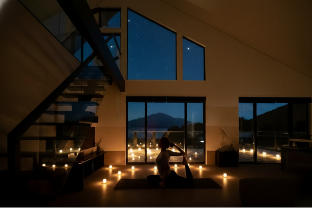 冬の北軽井沢ならではの絶景を楽しみながら、心身を深く整えるヨガ体験をご用意いたしました。床暖房で温まったお部屋から雄大な浅間山と、ウッドデッキを彩るスノーキャンドルの柔らかな灯火が目の前に広がります。本プランでは、ご自身のペースで行うセルフヨガとして、ヨガマットや簡単なガイドをご用意。ヴィラという完全なプライベート空間で、誰にも邪魔されることなく、日常でこわばった心と身体を芯から解きほぐしていただけます。