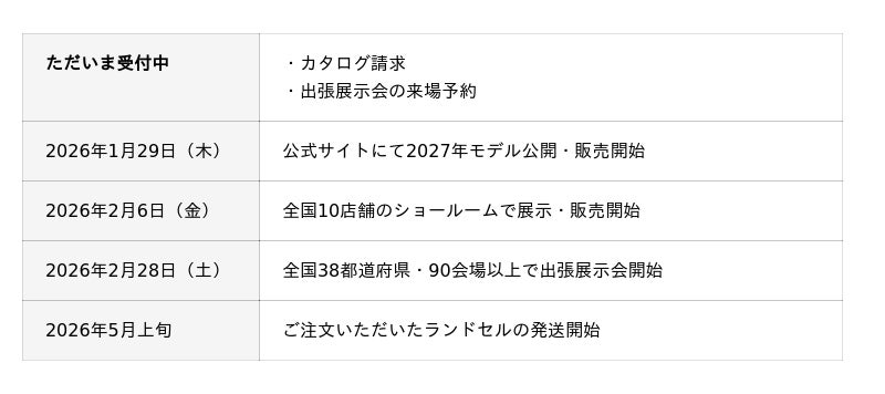 2027年度の新モデルは、全国10店舗のショールームおよび公式オンラインショップに加え、2026年2月末から7月にかけて全国38都道府県・90会場以上で開催される「出張展示会」でもご購入いただけます。