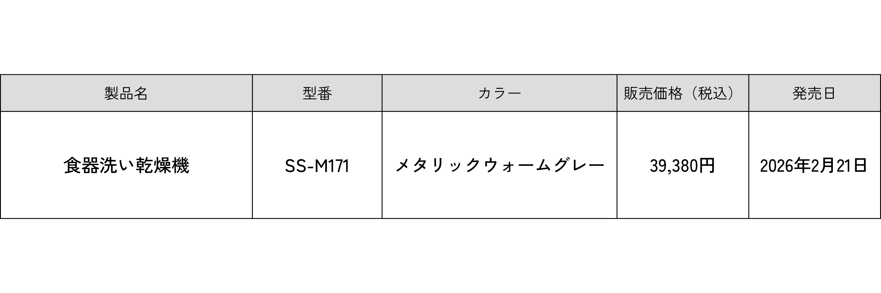 この度、1~3人向けのベーシックなモデル、「食器洗い乾燥機 SS-M171」を発売します。