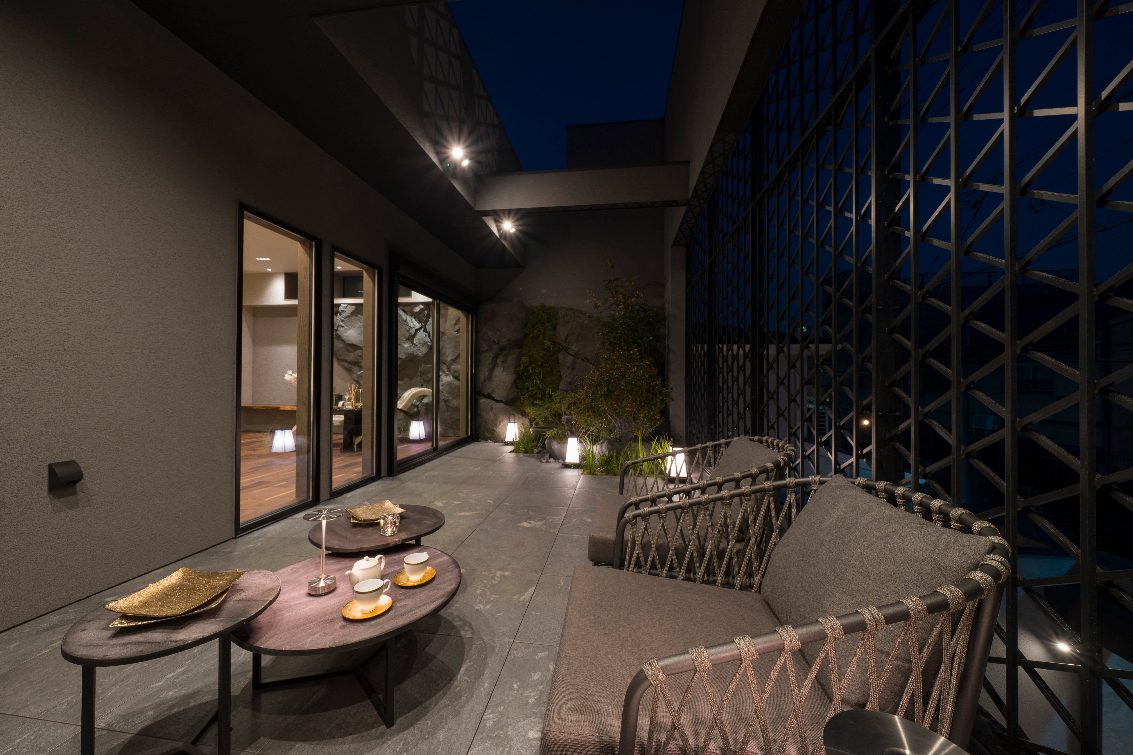 緻密な幾何学模様が光と影を操り、空間に繊細な和の美をもたらします。