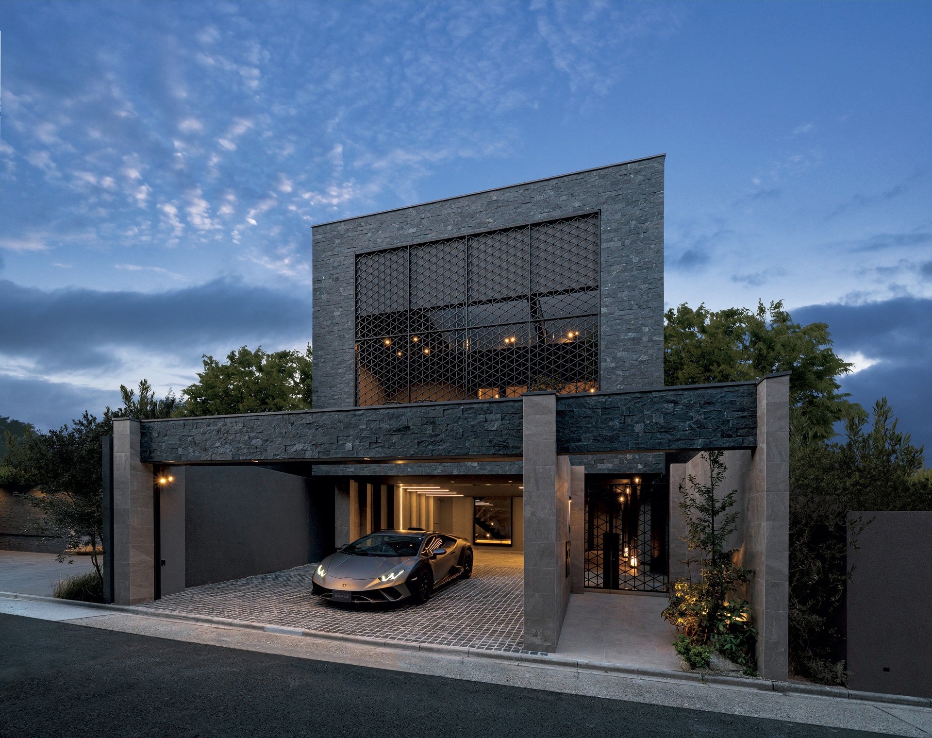 本プロジェクトは、総事業規模約11億円の高価格帯住宅として、設計初期段階から匠の専門性や思想を空間構想に反映させる体制を採用。諸戸の家が全体を統括することで、住宅設計・空間構成・素材選定・外構計画に至るまで、各分野の高度な技術と判断が有機的に組み込まれた住まいを実現しています。