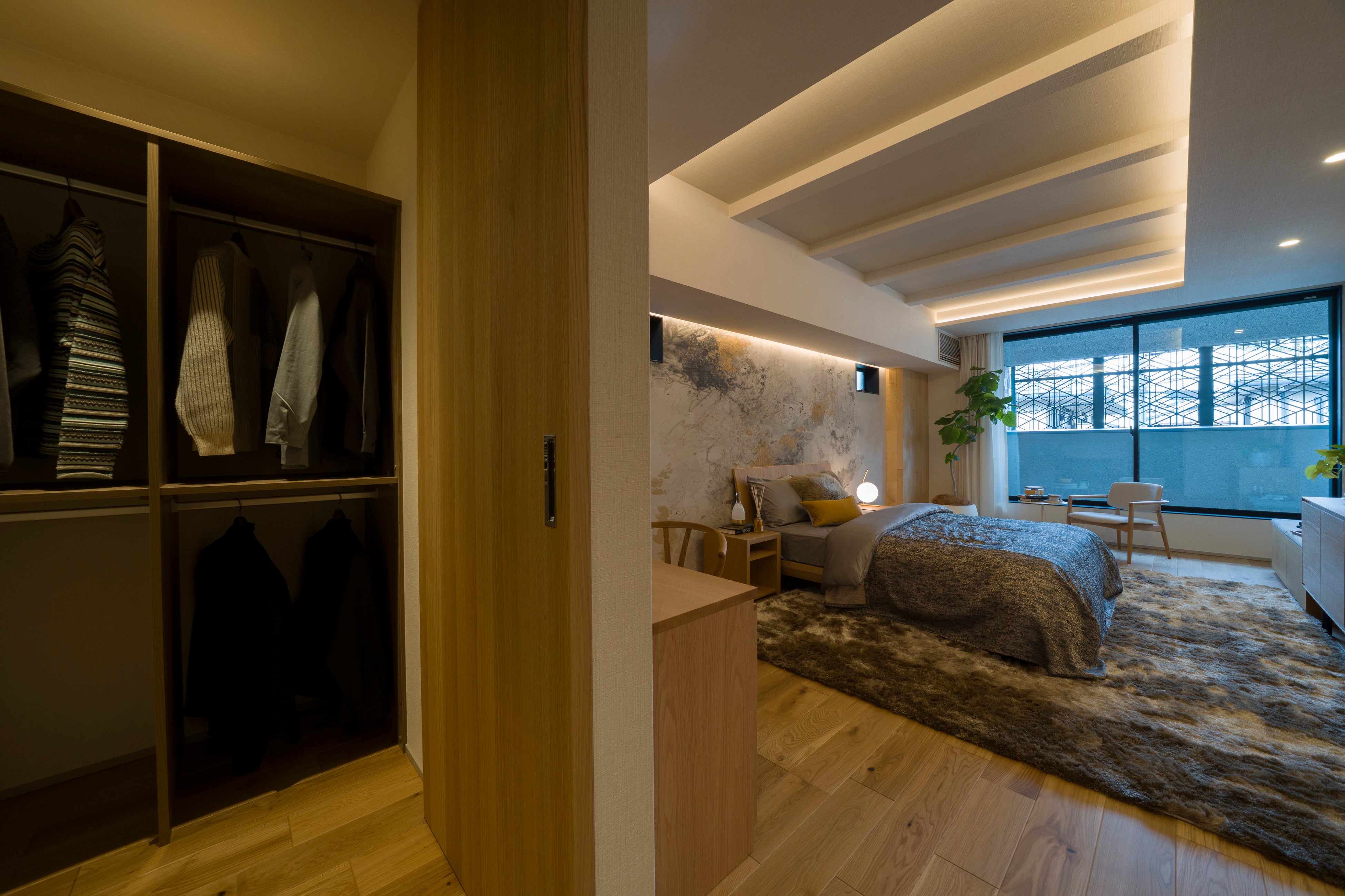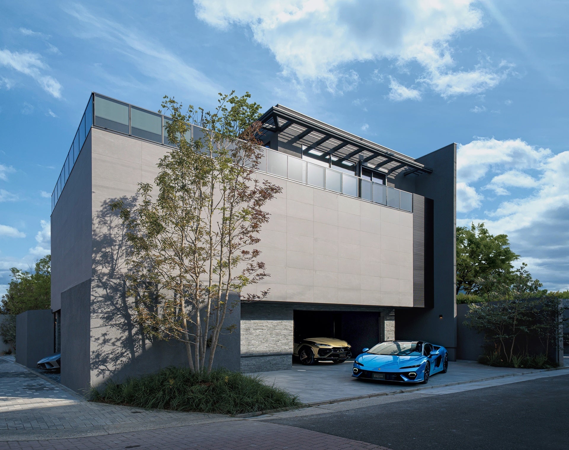 3棟それぞれに異なる空間テーマを設定し、迎賓性を重視した邸宅、静けさや内省性を意識した邸宅、庭や外部との関係性を深めた邸宅など、異なる思想と構成を持たせています。