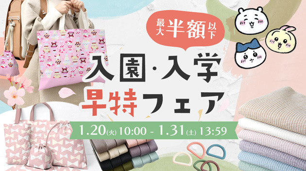 今春から入園・入学を控えるご家庭に向けて、手芸用品のオンラインショップ「手作り工房MYmama(エムワイママ)」は、入学・入園準備に必要な生地・副資材を集約した特集ページを公開中。