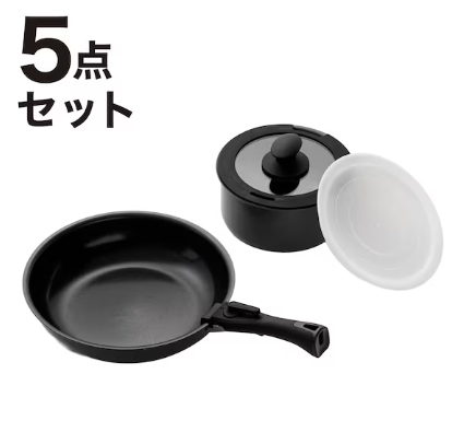 フライパン・鍋と着脱ハンドル、ふたがセットになっている便利でお得な5点セット・7点セットのほか、フライパン・鍋単品も取り揃えております。