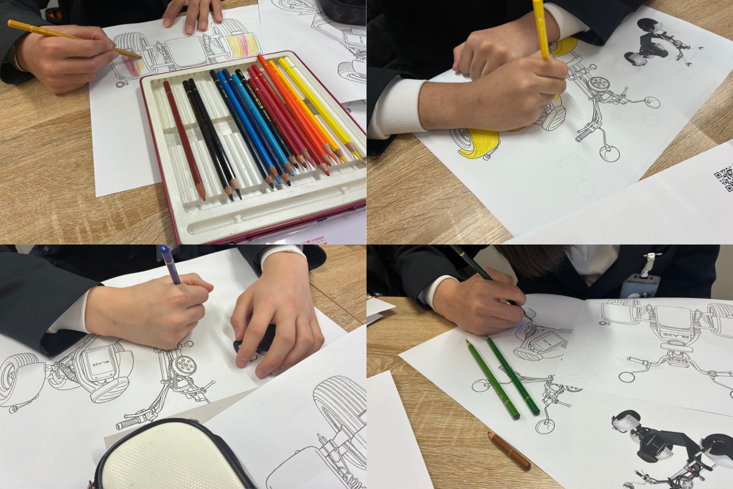 3輪電動バイク「EVトライク」のオリジナルカラー案を作成している様子
