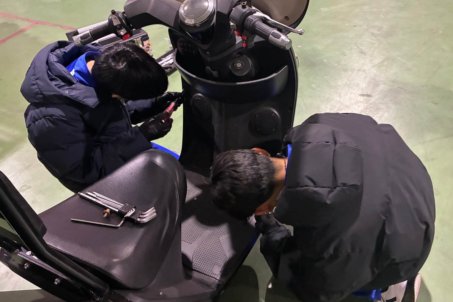 3輪電動バイク「EVデリバリー」を分解している様子