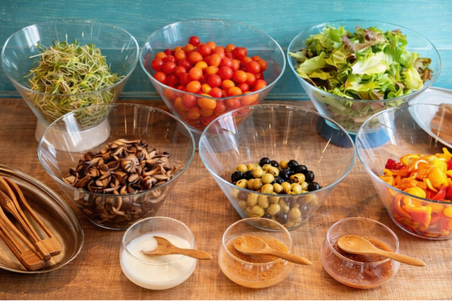 毎朝、老舗青果卸の目利きにより選び抜かれた野菜や果物を使用。素材本来の味わいを最大限に活かしたサラダバーに、季節のフルーツを加えることで、彩り・食感・満足感がさらに向上しました。