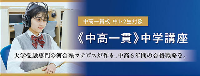 河合塾マナビスは、昨年開講した、中高一貫校の中学1年生用「《中高一貫》中学講座part1」に加え、中学2年生用の「《中高一貫》中学講座part2」を2026年3月より順次提供いたします*。これにより、中学1年生から高校3年生までの6年間を通じ、難関大学合格に向けた一貫した学習が可能となりました。