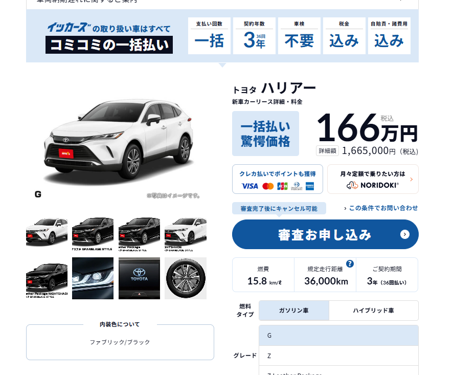 クルマはリースとして利用しながら、支払いは現金またはクレジットカードで一括精算。