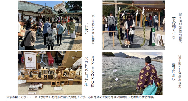 毎年6月には「泣き相撲 しまなみ場所」、9月には「原付カブ祭」、11月には「わんこ祭」「自転車神社祭(のろのろ1本橋 全国大会)、3月には「耳祭り」を開催し、年間4万人の参拝者が訪れています。