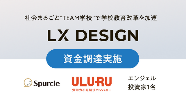 学校と複業で先生をしたい外部人材をつなぐ『複業先生(R)』を提供する株式会社LX DESIGN (本社:東京都千代田区、以下当社、代表取締役Co-CEO:金谷 智・竹中 紳治) は、2025年9月に発表した「社会まるごと“TEAM学校”」を新ブランドメッセージに掲げ、学校を社会全体で支える仕組みへとさらに進化するため、スパークル・うるる・エンジェル投資家より資金調達を実施しましたことをお知らせします。