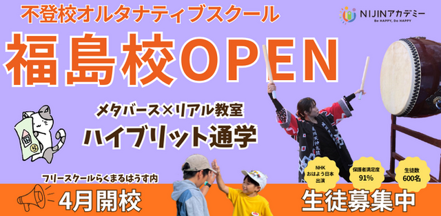 株式会社NIJIN(本社:東京都江東区、代表取締役:星野達郎)が運営する不登校オルタナティブスクール『NIJINアカデミー』は、2026年4月7日(火)東北地区2校目のリアル校『NIJINアカデミー福島校』を開校いたします。
