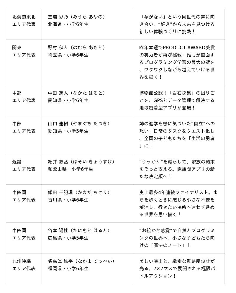 ◎「Tech Kids Grand Prix 2025」ファイナリスト8名について