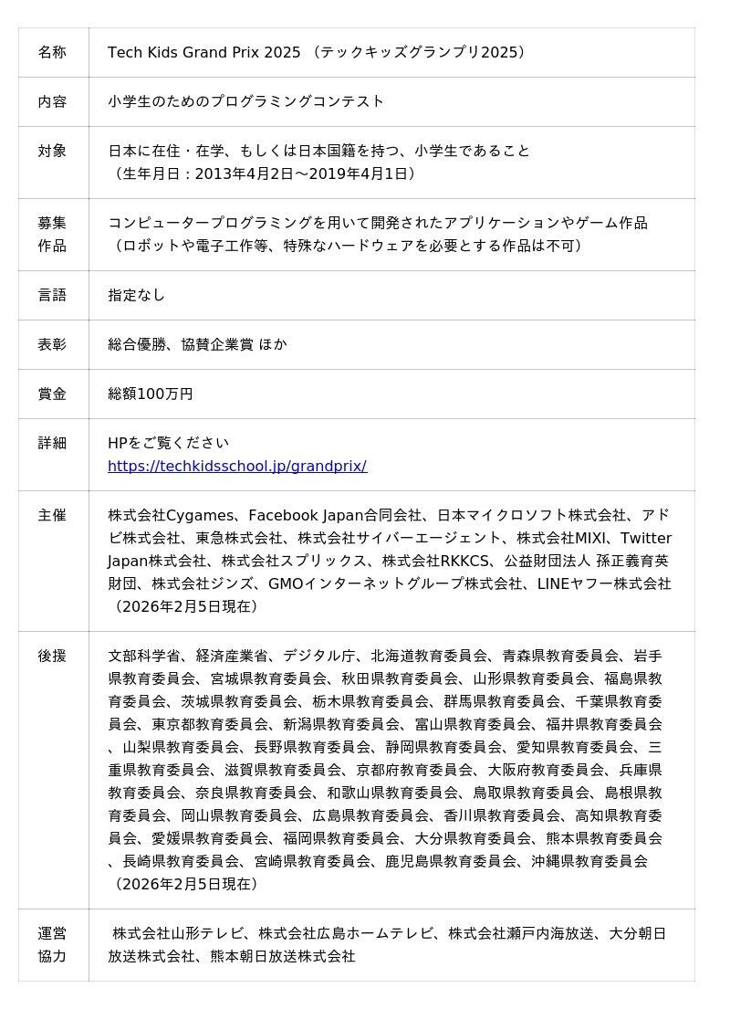 ■「Tech Kids Grand Prix 2025」開催概要