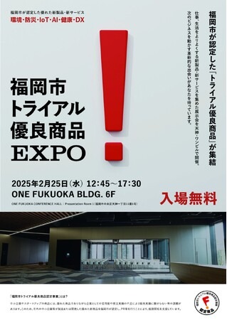 このたび、令和5年度~令和7年度に認定したトライアル優良商品の展示会「福岡市トライアル優良商品EXPO」を、下記のとおり開催します。