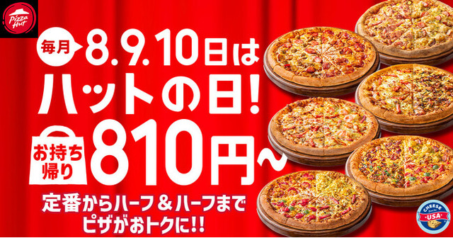 日本ピザハット株式会社(代表取締役会長兼社長:深瀬 成利、本社:神奈川県横浜市、以下:ピザハット)が展開する世界最大級のピザチェーン「ピザハット」は、毎月8日・9日・10日を「ハットの日」として、ピザハットの商品をお持ち帰り810円~でご提供するキャンペーンを実施しております 。 2026年2月の「ハットの日」は、恒例のMサイズ810円ピザに加え、一部店舗でSサイズ600円ピザを継続販売 。さらに店舗限定で「とろ~りたまご(※)」を使用した贅沢なハーフ&ハーフがラインナップに加わります ! 冬の寒さが厳しいこの時期、お財布に優しく、心も体も温まるおトクな3日間をお楽しみください 。