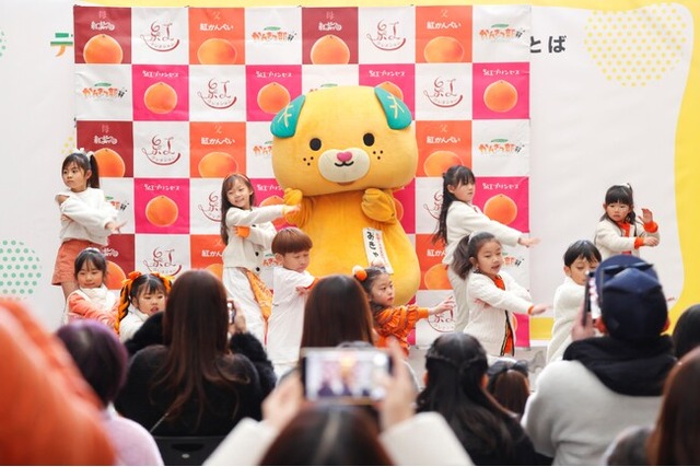[画像4: https://prcdn.freetls.fastly.net/release_image/134236/9/134236-9-043baa4dc39fecc432be41f99bd1a4bc-3900x2600.jpg?width=536&quality=85%2C75&format=jpeg&auto=webp&fit=bounds&bg-color=fff ]後半では、「えひめ愛フード推進機構」が かんきつの“旬”の時期分かりやすく覚えてもらうために制作した「愛媛のかんきつ 旬!旬!音頭」を、ディライブダンスカンパニーのスクール生がみきゃんと一緒に元気いっぱいに披露してくれました。