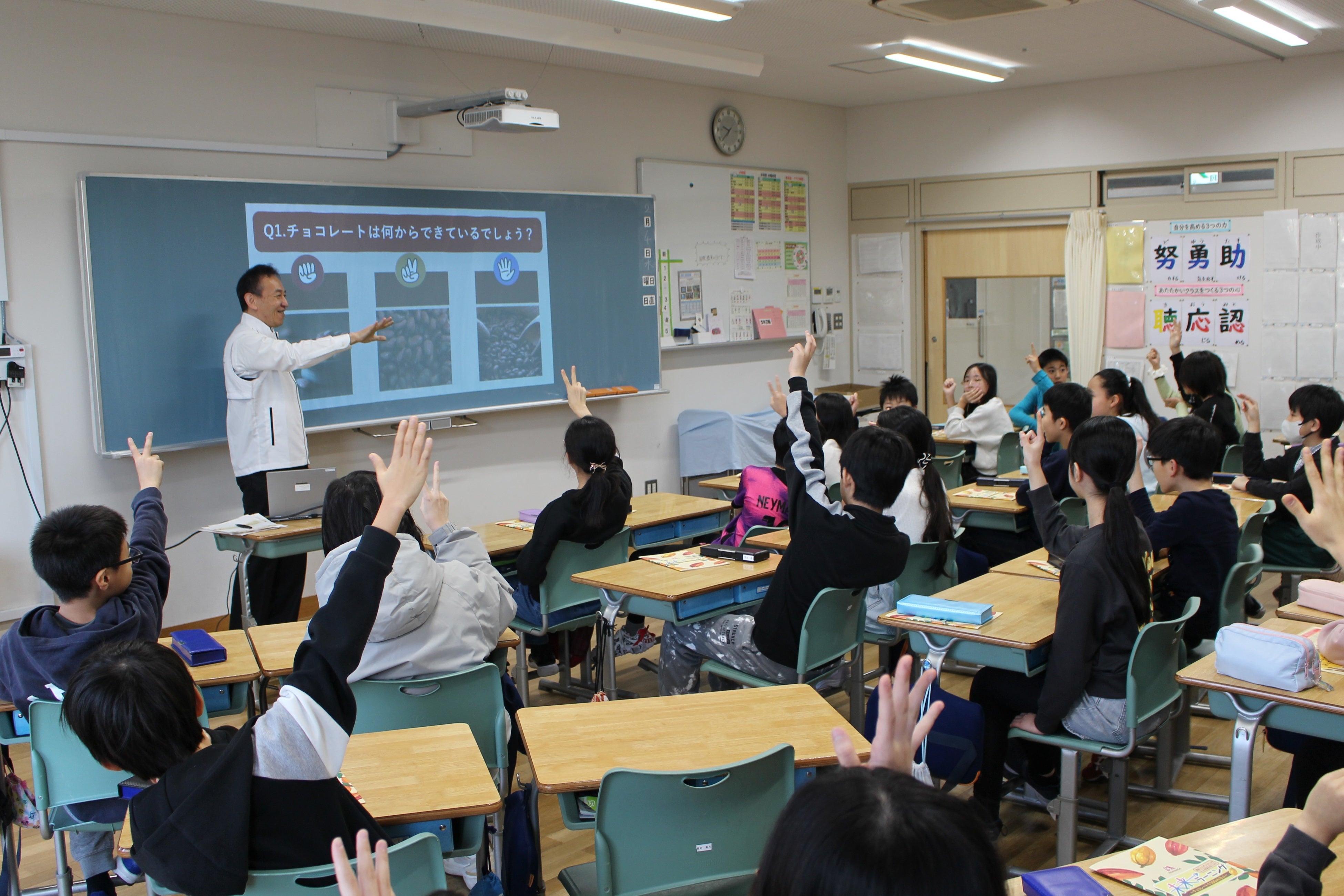 森永製菓株式会社(東京都港区芝浦、代表取締役社長 COO・森 信也)は、カカオ産地の子どもたちを支援する「1チョコ for 1スマイル」を題材としチョコレートでSDGsを学ぶことができる出張授業を代表取締役社長 COOの森 信也が講師を務め、港区立芝浜小学校にて2月6日(金)に実施しました。バレンタインデーを目前に控え、出張授業を通じて、チョコレートの原料であるカカオの産地やカカオ産業をめぐる社会課題について、子どもたちが「自分ごと化」して考えるきっかけを提供しました。