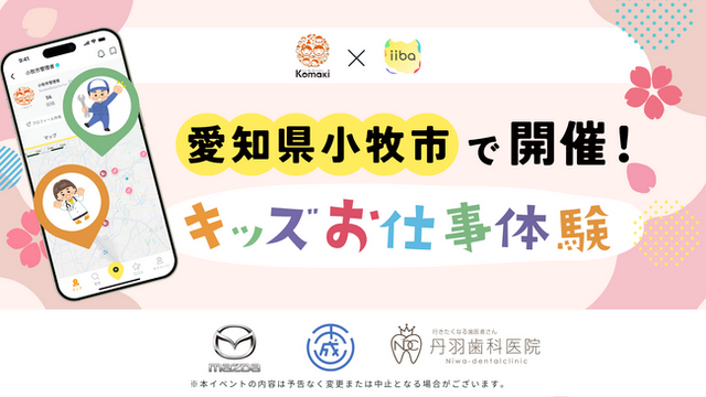 子育てマップアプリ『iiba』を運営する株式会社iiba(本社:東京都港区、代表取締役:逢澤奈菜、以下 当社)は、愛知県小牧市と連携し、市内のお仕事を体験できる「キッズお仕事体験イベント」を2026年3月1日(日)~3月31日(火)に開催いたします。
