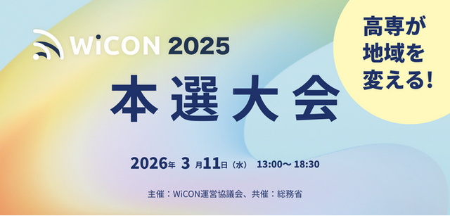 WiCON運営協議会(一般社団法人情報通信ネットワーク産業協会(会長:森川 博之)、一般財団法人全国地域情報化推進協会(理事長:吉田 眞人)、独立行政法人国立高等専門学校機構(理事長:谷口 功))は、全国の高等専門学校(以下、高専)の学生を対象としたワイヤレス技術のコンテスト「WiCON2025」の最終審査となる本選大会を、2026年3月11日(水)に東京大学 伊藤国際学術センター 伊藤謝恩ホールにて開催いたします。