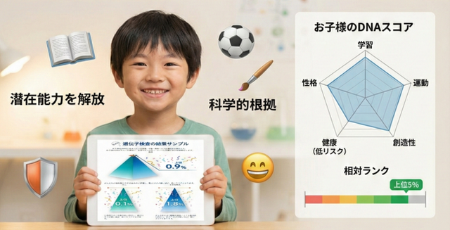 現代の育児において、多くの親が「我が子の才能をどう伸ばすべきか」「どのような環境が適しているのか」という課題を抱えています。しかし、子供の個性を見極める手段の多くは、親の主観や周囲との比較に頼らざるを得ないのが現状です。2026年2月、株式会社seeDNA(本社:東京都)は、子供の持つ遺伝的な特性を解析し、そのスコアが全体の中で上位何パーセントに位置するのかが分かる遺伝子検査「子どもDNAスコア」の提供を開始いたしました。