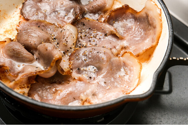 「ベーコンはよくバラ肉が使われますが、こちらは赤身と脂身のバランスが良い肩ロースを使っているんです。カルボナーラやアスパラベーコン、ポトフなど、幅広いお料理にもお楽しみいただけます。」