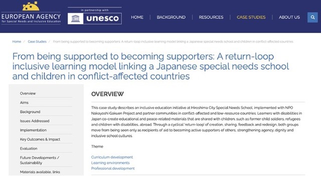 本ニュースリリースでお知らせした UNESCO×European Agency for Special Needs and Inclusive Education の国際知見基盤「Inclusive Education in Action」 に掲載された、なかよし学園のケーススタディ本文は以下よりご覧いただけます(英語)。