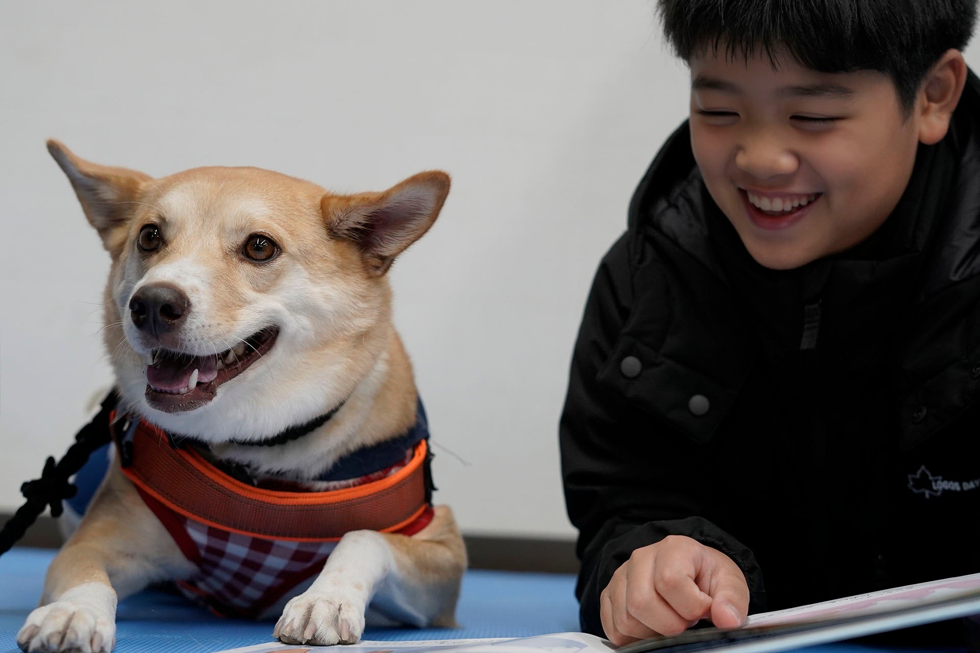 子どもが選んだ本を、セラピードッグのそばで読む『読書犬体験会』