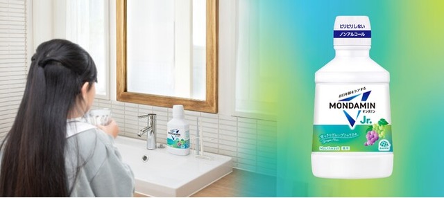 近年、子ども向けオーラルケア市場は拡大傾向にあります。保護者の方はお子様の歯の健康維持について、「手間は惜しまない」(52%)、「出費は惜しまない」(45%)(※1)と高い健康意識を持っていますが、厚生労働省の調査では約30%の方が「ハミガキ以外は何もしていない」という現状がわかっております。(※2)子どもの成長段階、特に小学校高学年(10歳以降)では、乳歯と永久歯が混在する生え変わり期であり、複雑な歯並びから磨き残しが増加します。また歯肉炎リスクも高まるため、むし歯予防や口臭予防に加え、洗口液でのケアが必要です。しかし、歯ブラシでは届かないところに菌が潜んでいることや、磨き残しがあるため、歯みがきだけでは十分なケアが難しいことがあります。そこで当社は、オーラルケアに前向きに取り組んでくれるお客様(小学生高学年~中学生)に対し、彼らが抱えるむし歯、口臭、磨き残しといった複数の悩みに対応し、手軽な洗口液習慣を通じて効果的なオーラルケアを提案するため、『モンダミンJr.』をリニューアル発売します。