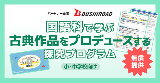 今回はその第九弾として、IPを軸としたエンターテインメントコンテンツを手がける株式会社ブシロードと連携した「国語科で学ぶ古典作品をプロデュースする探究プログラム」を提供いたします。