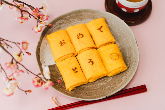 本商品は通常の焼印の代わりに「おめでとう」の文字をあしらうことで、お祝いに適した見た目であるだけでなく、玉子と椎茸、6種類の具材が縁起の良い食材である点も、ハレの日にぴったりの一品です。化粧箱入り・ひな祭りメッセージカード付きで、ひな祭りのお取り寄せや贈り物、手土産としてふさわしい仕立てでお届けします。